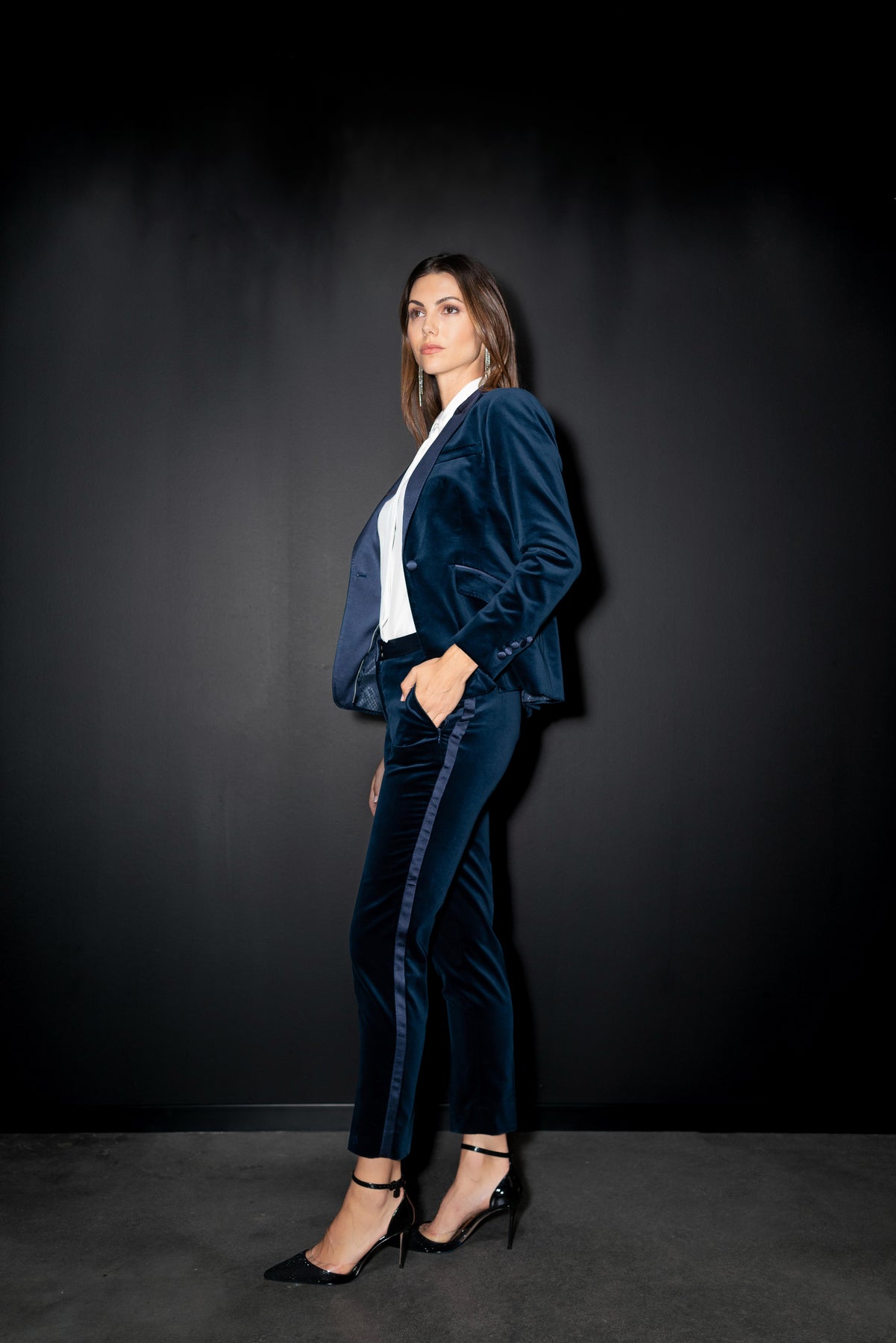 The look of a tuxedo reflects the je ne sais quoi that makes the wearer a woman who all women want to be: a stylish woman that is in charge of herself. It is a chic take on traditional formalwear that can be worn anywhere.